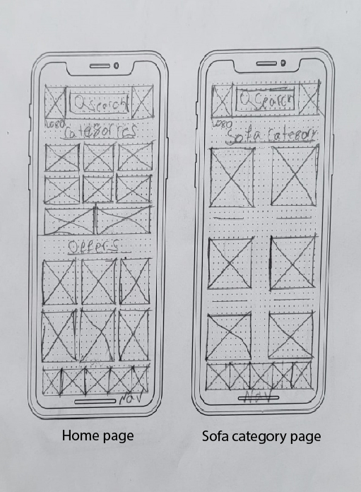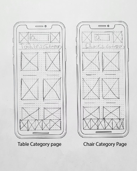 I did paper sketches to help me layout the pages of the app. It helped me to see where I could place each element that works for a better design. So, main thing I look at here is only the layout, I didn’t bother with images & typography just yet. But, I used Xboxes as place holder for the images & underline for as placeholder of the texts.